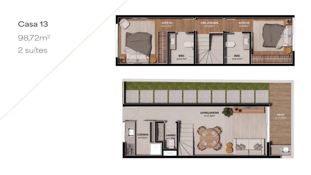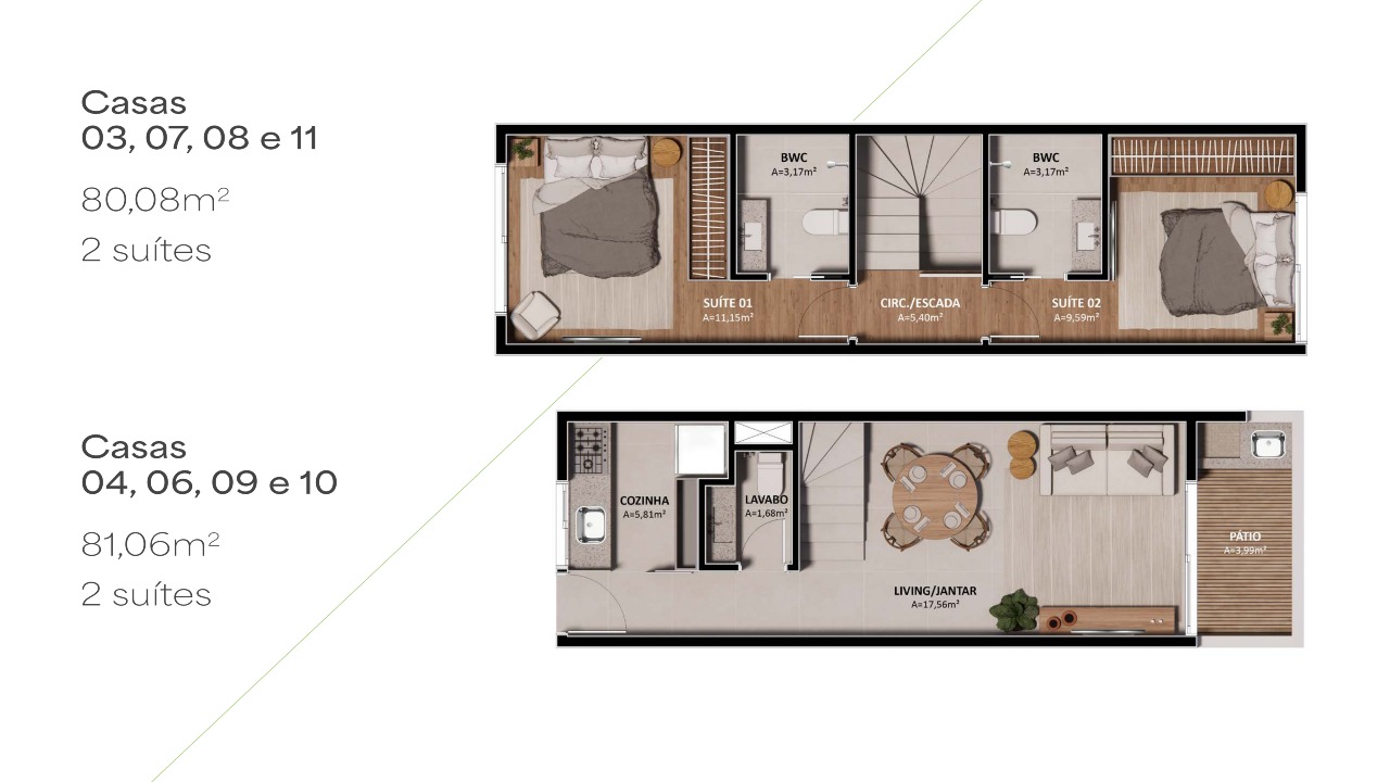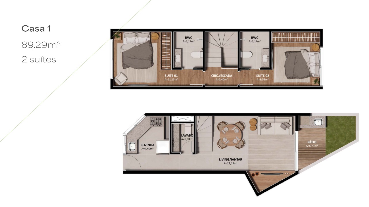 2 quartos (2 suítes)